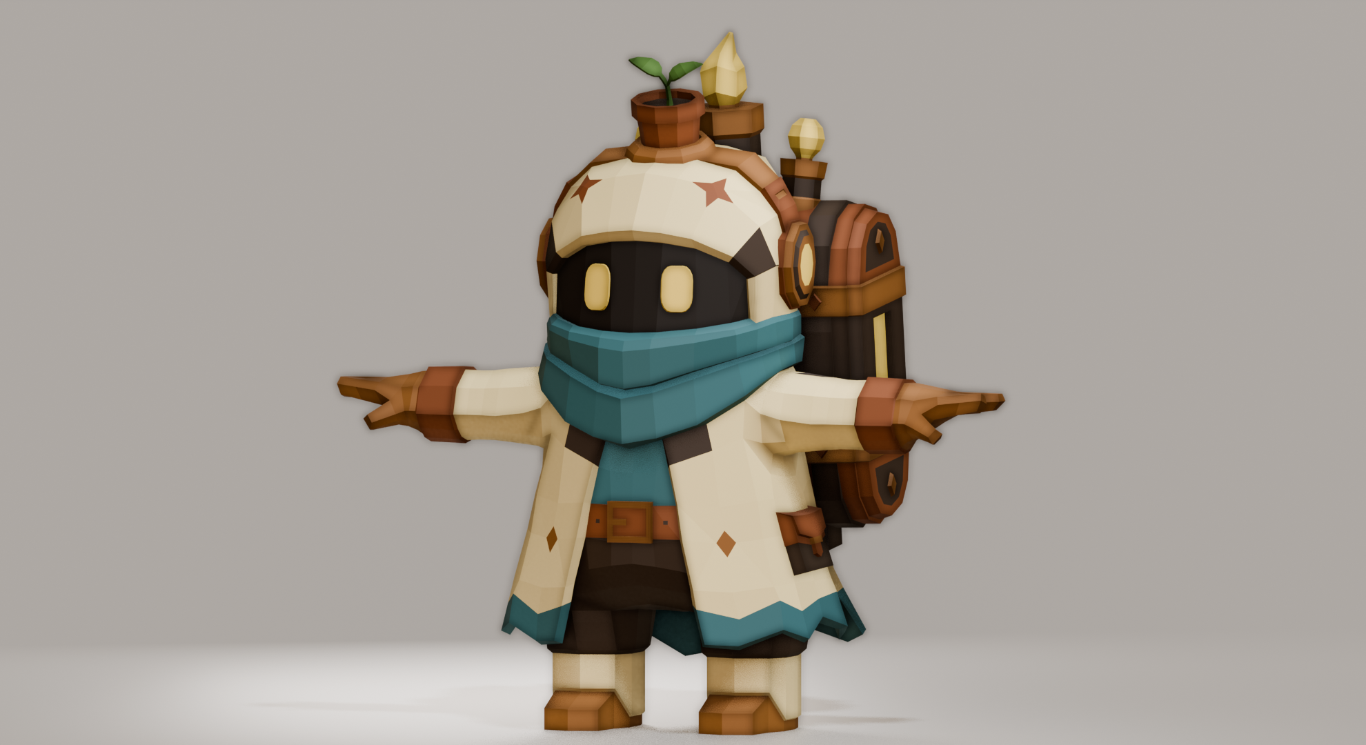 Meet Sprout, a stylized low poly explorer built for games and interactive worlds. Designed with a soft silhouette and a warm palette, this character fits naturally into cozy worlds, fantasy adventures, and stylized environments.