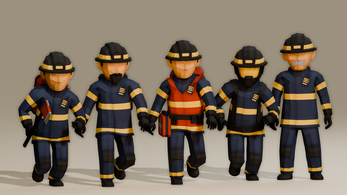 A stylized low poly firefighter crew designed for games and interactive worlds. This pack includes five unique firefighters sharing the same animation system, color palette and visual style.