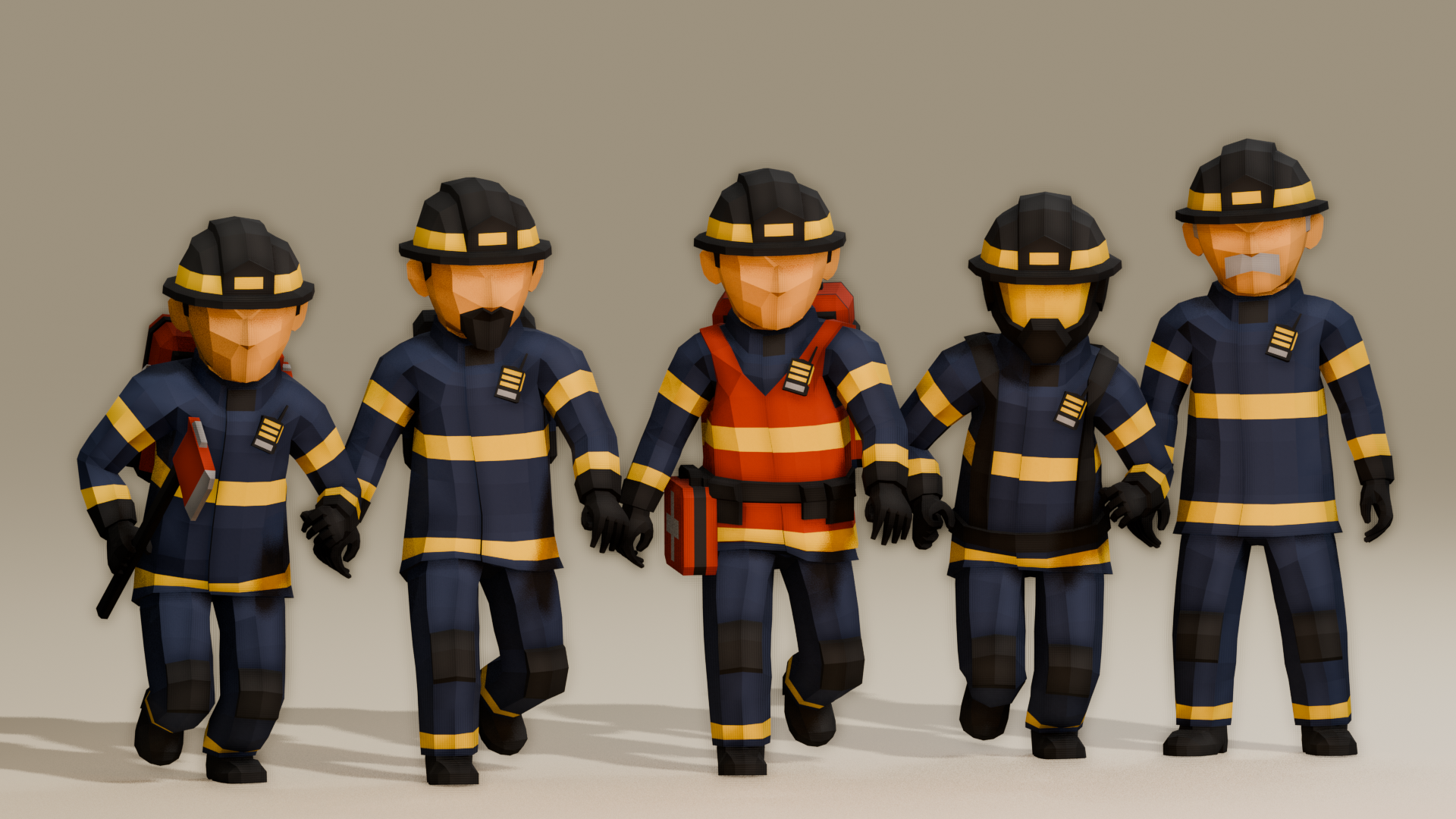 LOW-POLY FIREFIGHTER CREW 01-05